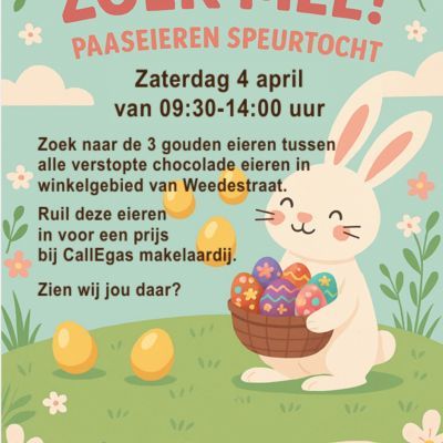 Kom zaterdag 4 april zoeken naar paaseieren in winkelcentrum Soest - Van Weedestraat. De chocolade eieren zijn buiten in...